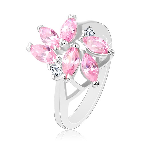 Popis produktu Prsten zdobený broušenými zrnky růžové barvy, dva kulaté čiré zirkony - Velikost: 53