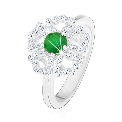 Popis produktu Prsten ze stříbra 925, blýskavý kvítek, čiré obrysy lupínků, zelený střed - Velikost: 53