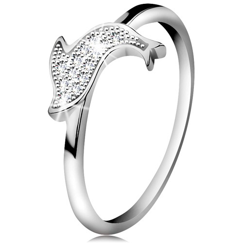 Popis produktu Prsten ze stříbra 925, blýskavý skákající delfín, drobné čiré zirkony - Velikost: 52