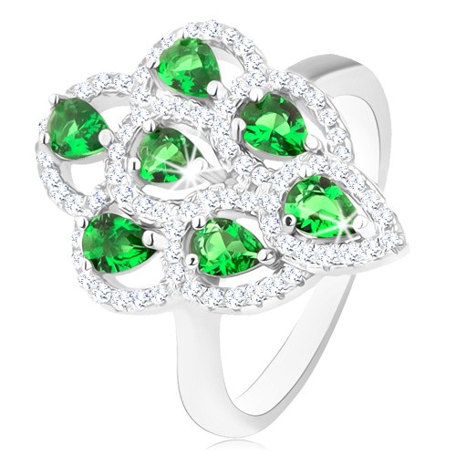 Popis produktu Prsten ze stříbra 925, blýskavý střapec ze zelených zirkonů s čirým lemem - Velikost: 57