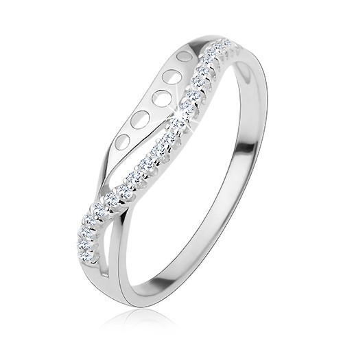 Popis produktu Prsten ze stříbra 925, čirá zirkonová vlnka, hladká linie s kulatými výřezy - Velikost: 50