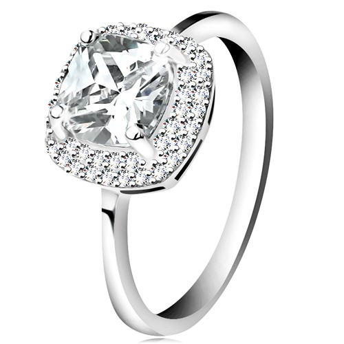 Prsten ze stříbra 925, čirý broušený zirkon - čtverec, třpytivý lem - Velikost: 49