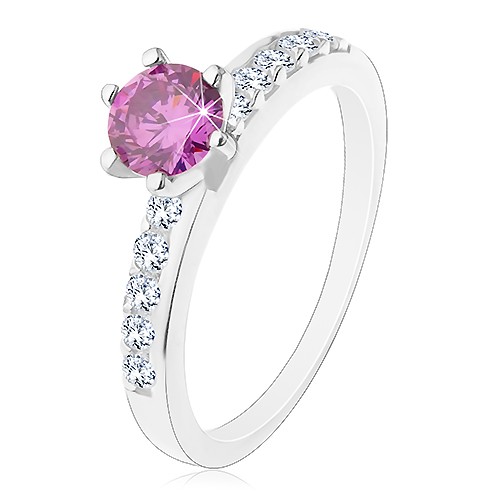Zásnubní prsten, stříbro 925, blýskavá ramena s liniemi čirých zirkonků, vyvýšený kulatý zirkon ve fialovém odstínu.Nákup přes nás znamená jistotu dobré ceny. Pokud budete spokojeni, doporučte nás prosím svým známým.