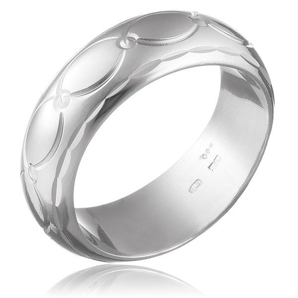 Popis produktu Prsten ze stříbra 925 - hrubá lesklá linie se zrnky a kužely - Velikost: 54