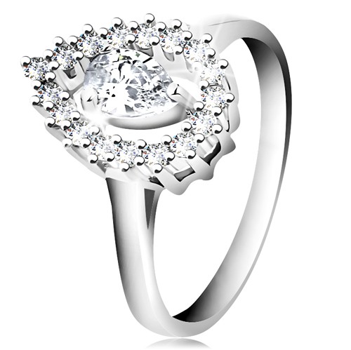 Popis produktu Prsten ze stříbra 925, kontura velké obrácené kapky s čirou slzičkou - Velikost: 47