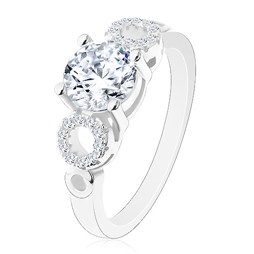 Popis produktu Prsten ze stříbra 925, kulatý čirý zirkon, blýskavé obrysy kruhů - Velikost: 54