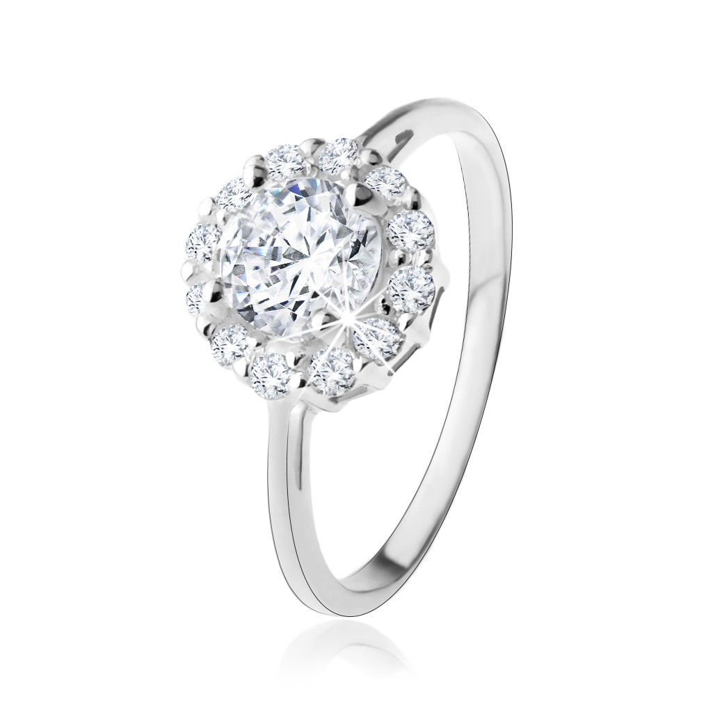 Popis produktu Prsten ze stříbra 925 - kulatý zirkon čiré barvy se třpytivou konturou - Velikost: 54
