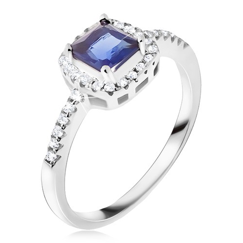 Popis produktu Prsten ze stříbra 925, modrý čtvercový kamínek, zirkonový lem - Velikost: 58
