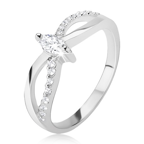 Popis produktu Prsten ze stříbra 925 - motiv nekonečna, zirkonový pás, elipsovitý kamínek - Velikost: 56