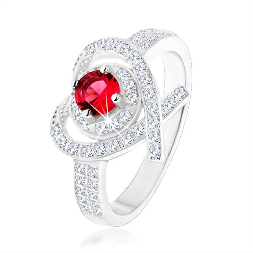 Popis produktu Prsten ze stříbra 925, obrys srdíčka s překříženými liniemi, růžový zirkon - Velikost: 60