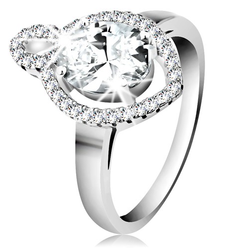 Popis produktu Prsten ze stříbra 925, oválný čirý zirkon s blýskavým lemem, malý obrys zrnka - Velikost: 50
