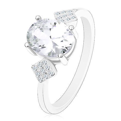 Prsten ze stříbra 925, oválný zirkon čiré barvy, zirkonové kosočtverce - Velikost: 60