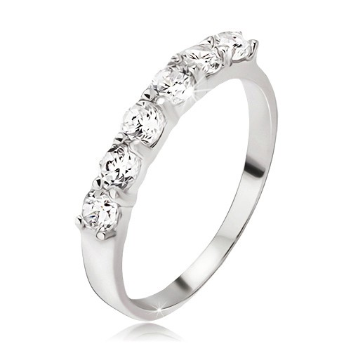 Prsten ze stříbra 925, pás kulatých čirých zirkonů v kalíšcích - Velikost: 55