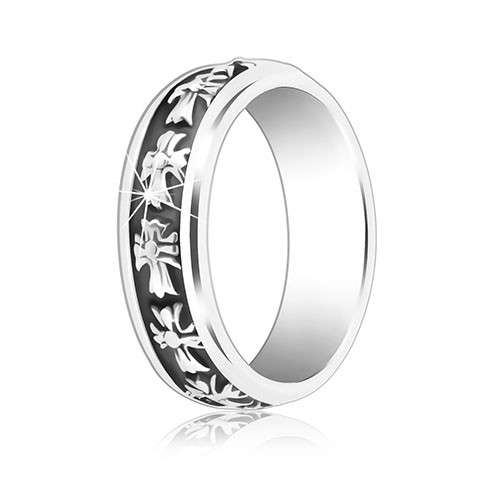 Popis produktu Prsten ze stříbra 925 s kříži a patinou - Velikost: 62