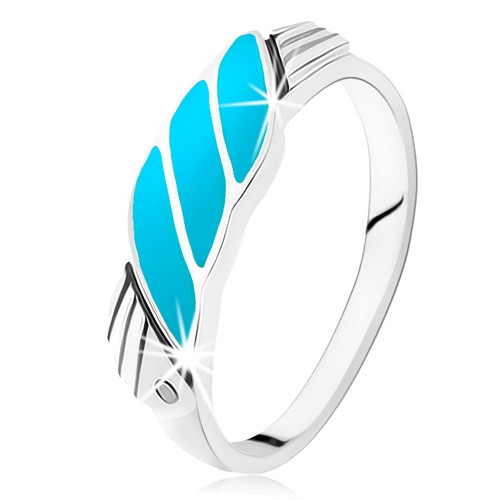 Prsten ze stříbra 925, šikmé linie z tyrkysu, andělská křídla, zirkonky - Velikost: 57