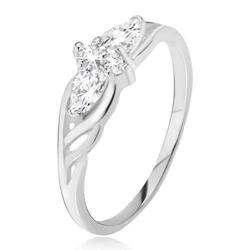 Popis produktu Prsten ze stříbra 925 - slzičkové a okrouhlé kamínky, výřezy v ramenech - Velikost: 55