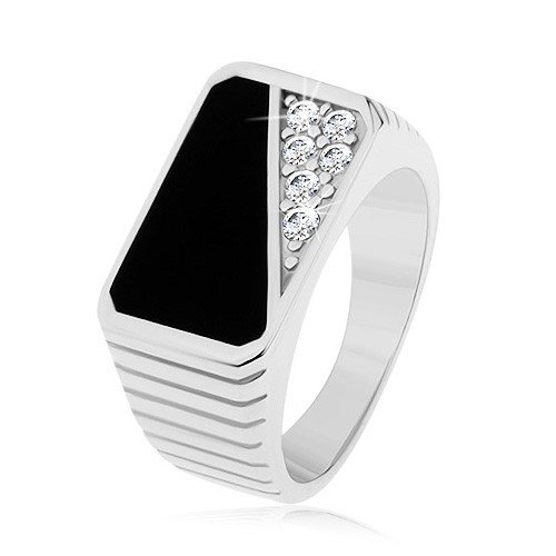 Popis produktu Prsten ze stříbra 925, svislé zářezy, obdélník - černá glazura, čiré zirkony - Velikost: 70