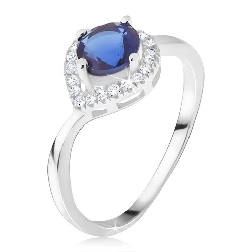 Popis produktu Prsten ze stříbra 925, tmavomodrý kámen, zirkonová kapka - Velikost: 59