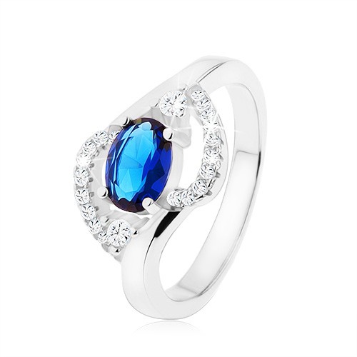Popis produktu Prsten ze stříbra 925, tmavomodrý zirkonový ovál, zaoblené čiré linie - Velikost: 52