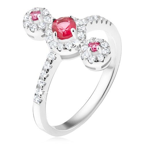 Popis produktu Prsten ze stříbra 925, tři červené kamínky se zirkonovým lemem - Velikost: 60