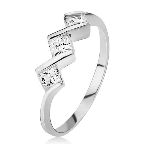 Udělejte si radost produktem Prsten ze stříbra 925 - tři čiré čtvercové kamínky, lesklá cik-cak linie - Velikost: 60 od známé značky za příznivou cenu 319 CZK Kč. Zobrazit více »