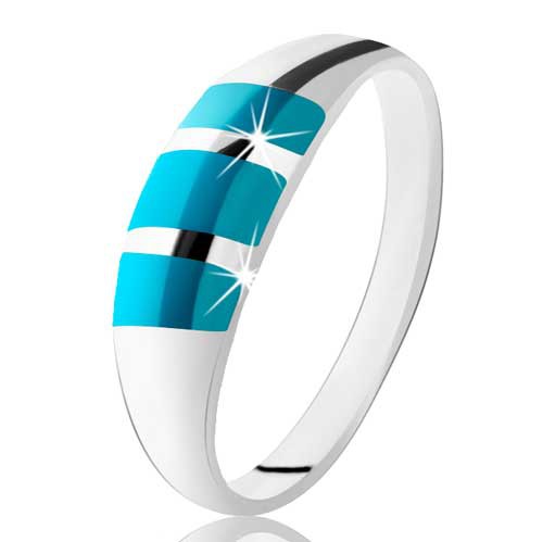 Popis produktu Prsten ze stříbra 925, tři šikmé tyrkysové pruhy, hladký povrch - Velikost: 62