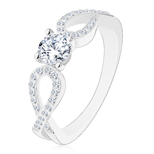 Popis produktu Prsten ze stříbra 925, zvlněná propletená ramena, čirý zirkon - Velikost: 58