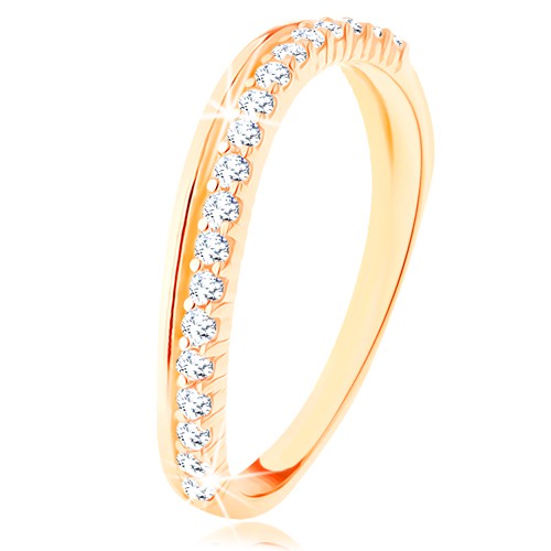 Popis produktu Prsten ze žlutého 14K zlata - hladká a čirá zirkonová zvlněná linie - Velikost: 57