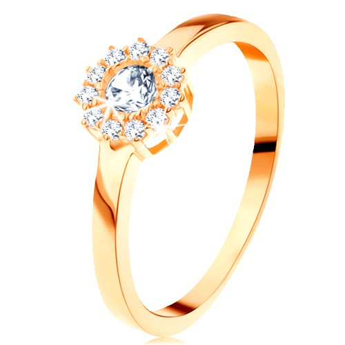Popis produktu Prsten ze žlutého 14K zlata - třpytivý květ z kulatých čirých zirkonů - Velikost: 55