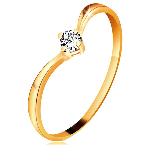 Popis produktu Prsten ze žlutého zlata 585 - lesklá zahnutá ramena, blýskavý čirý diamant - Velikost: 51