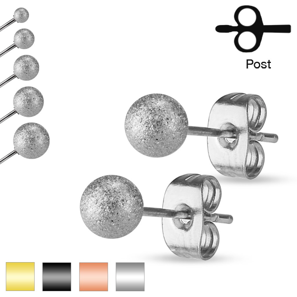 Puzetové náušnice, ocel 316L, pískované třpytivé kuličky, 5 mm - Barva: Zlatá