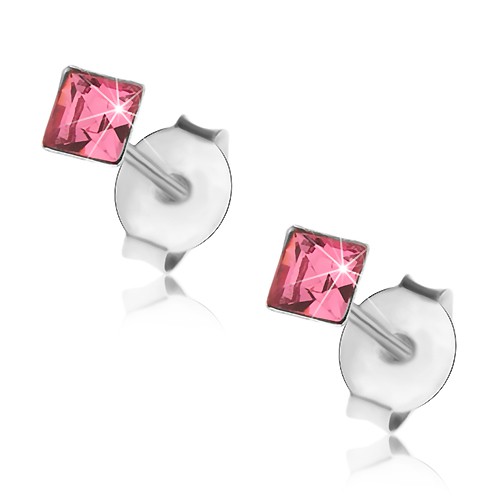 Popis produktu Puzetové náušnice, stříbro 925, čtvercový krystalek v růžovém odstínu, 3 mm