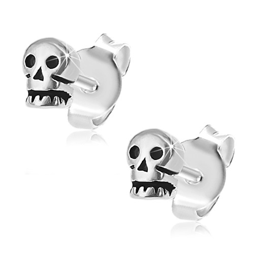 Popis produktu Puzetové náušnice, stříbro 925, lesklé lebky zdobené černou patinou