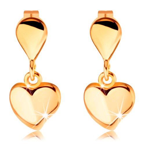 Popis produktu Puzetové náušnice ve žlutém 14K zlatě - malá kapka a visící srdíčko