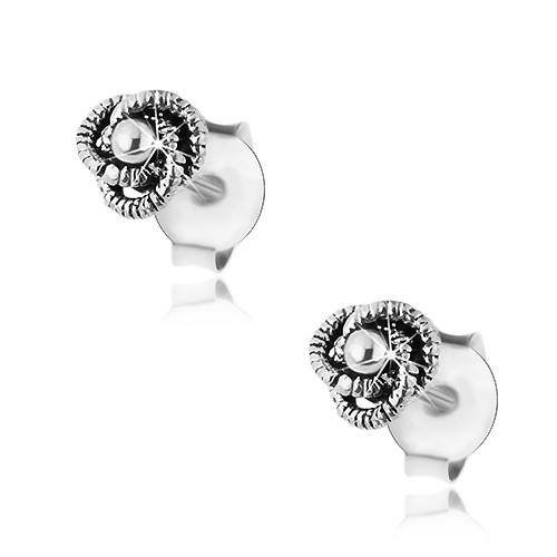 Popis produktu Puzetové náušnice ze stříbra 925, patinovaný uzel s lesklou kuličkou