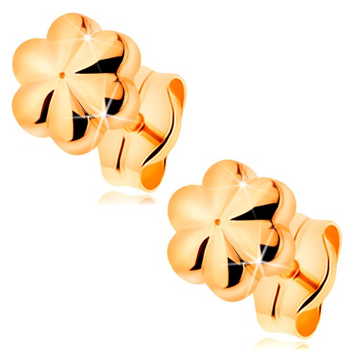 Popis produktu Puzetové náušnice ze žlutého 14K zlata - malý lesklý kvítek se zářezy