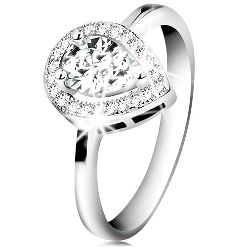Prsten ze stříbra 925, transparentní broušený zirkon v podobě kapky, čirý zirkonový lem, rhodiovaný povrch.Upozorňujeme, že nabídka má omezenou platnost. Naše heslo: kvalita, výhodná cena, prozákaznický přístup.