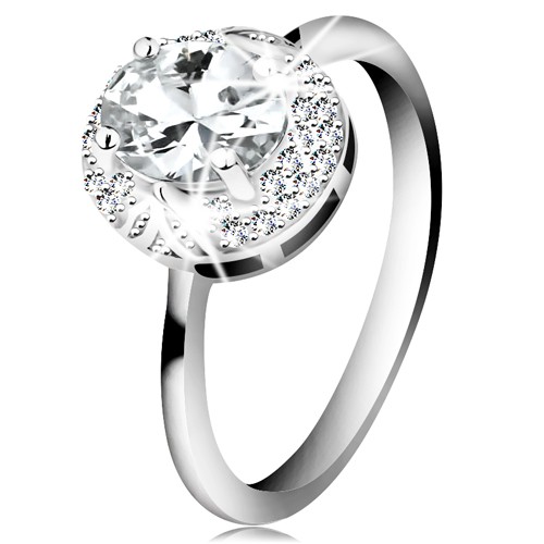 Popis produktu Rhodiovaný prsten ze stříbra 925, velký čirý zirkonový ovál, lístečky - Velikost: 59