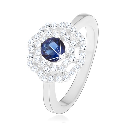 Popis produktu Rhodiovaný stříbrný prsten 925, slunce - modrý kulatý zirkon, dvojitý čirý lem - Velikost: 60