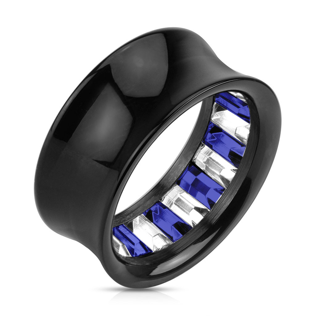 Popis produktu Sedlový tunel do ucha z oceli 316L, vnitřní strana se zirkony ve dvou barvách - Tloušťka : 19 mm