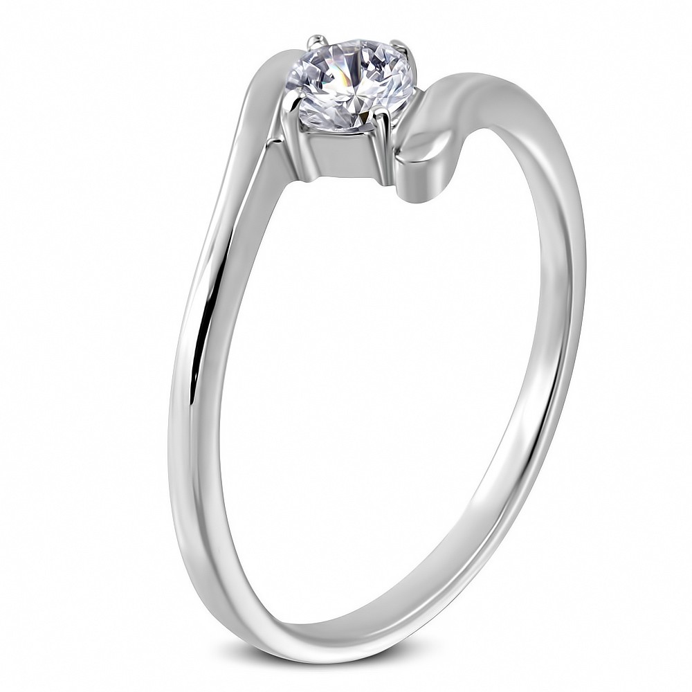 Ocelový zásnubní prsten má kulatý čirý zirkon uchycený mezi konci prstene zaobleného tvaru.Ceny zboží a skladovou dostupnost neustále aktualizujeme. Přejeme vám příjemné nakupování.