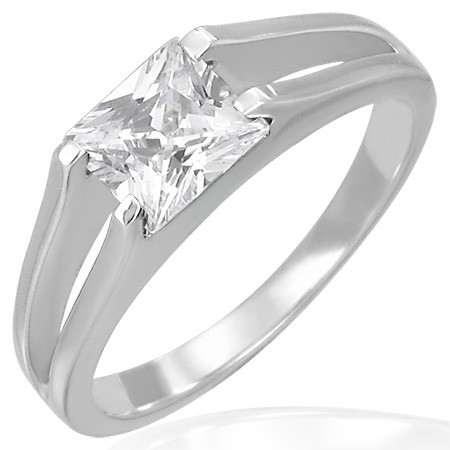 Popis produktu Snubní prsten - zirkon čtvercový v úchytu dvojitých linek - Velikost: 51