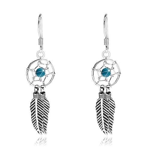Popis produktu Stříbrné 925 náušnice s lapačem snů, světle modrá kulička, 10 mm