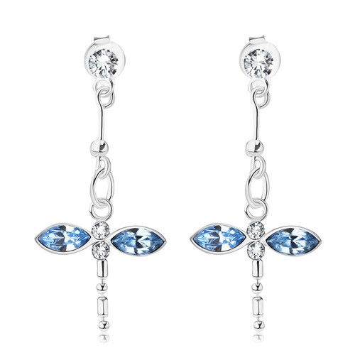 Popis produktu Stříbrné 925 náušnice, visící vážka, modré a čiré krystaly Swarovski