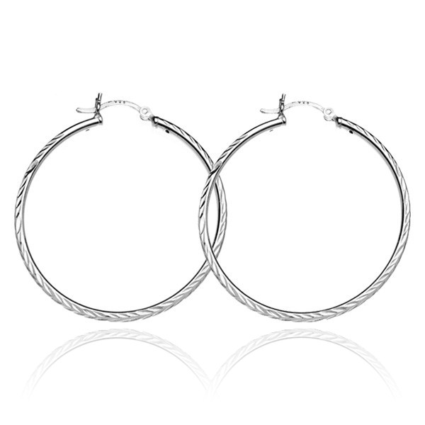 Popis produktu Stříbrné náušnice 925 - kruhy s gravírovanými lístky, 25 mm