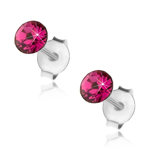 Stříbrné náušnice 925, kulatý fuchsiový krystal Swarovski, 4 mm
