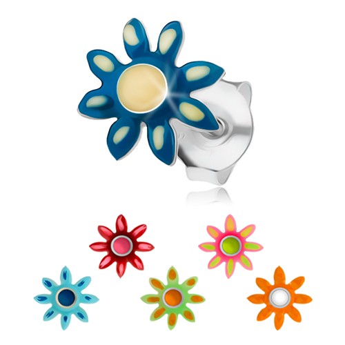 Stříbrné náušnice 925, kvítek s barevnou glazurou, vypouklý střed, puzetky - Barva: Tmavomodrá od společnosti Šperky Eshop - tento artikl je v tento okamžik po slevě za 217 CZK. Doporučujeme pouze prověřené prodejce a e-shopy. A co takhle doprava ZDARMA? Objednáte-li si nad Kč, neplatíte poštovné. Zařaďte se mezi spokojené klienty.