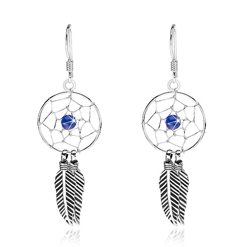 Náušnice ze stříbra 925, kruhový lapač snů s výpletem, patinovaná pírka a tmavě modrá kulička.U nás najdete pouze produkty prověřených prodejců, Naše heslo: kvalita, výhodná cena, prozákaznický přístup.