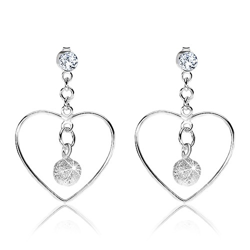 Popis produktu Stříbrné náušnice 925, obrys srdce, čirý krystalek Swarovski, blýskavá kulička