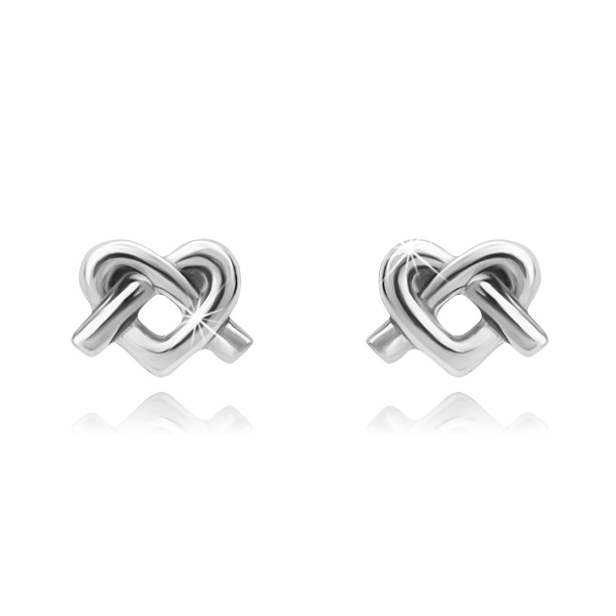 Stříbrné 925 náušnice, propletená kontura srdce, prodloužené a prolínající se konce, hladký vypouklý povrch.U nás nakoupíte vždy kvalitní zboží za bombastické ceny. Naše heslo: kvalita, výhodná cena, prozákaznický přístup.